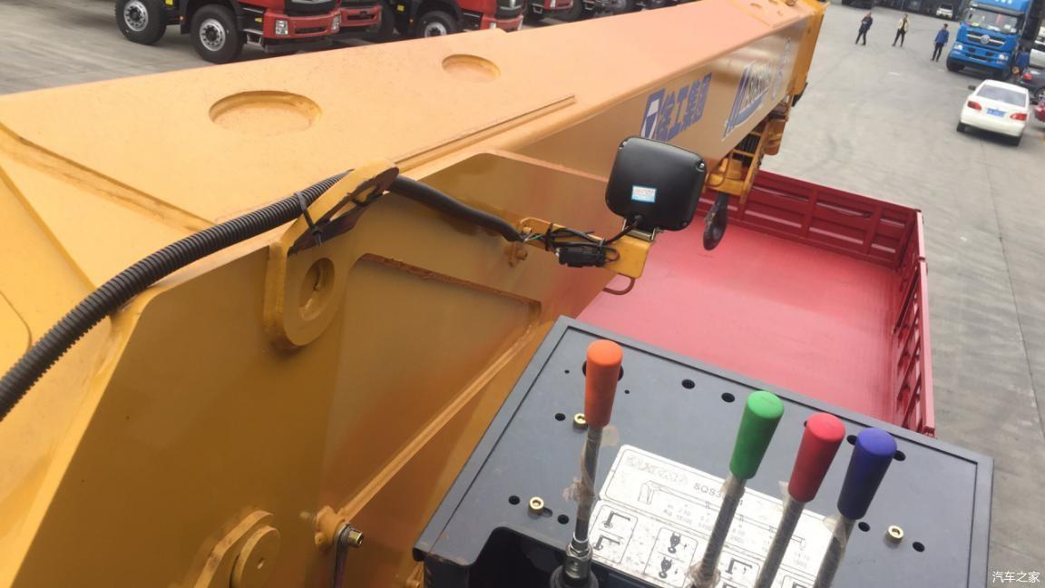 吊臂采用了徐工的SQS300-4直臂隨車吊,吊裝重量為12噸,具備四節伸展吊臂,主臂可以360°旋轉。該吊臂的工作半徑為12.5米,而吊裝重量也是根據工作半徑來定的,半徑越大吊裝重量越小,工作半徑為12.5米時的吊裝重量1.8噸;而工作半徑為2.5米的時候可以吊裝12噸的貨物。